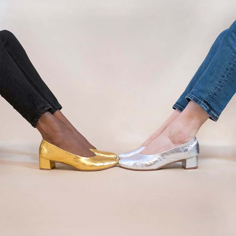 Loyal Footwear is the new kid on the block, founded in 2019 by Keiko Hirosue and Rebecca Heykes in Hoboken, New Jersey, where their shoes are designed and made-to-order. They use vegan leather, recycled soling rubber, and plant-based textiles. And their gold and silver shoes (pictured above) are made from pineapple leather (Piñatex)!
